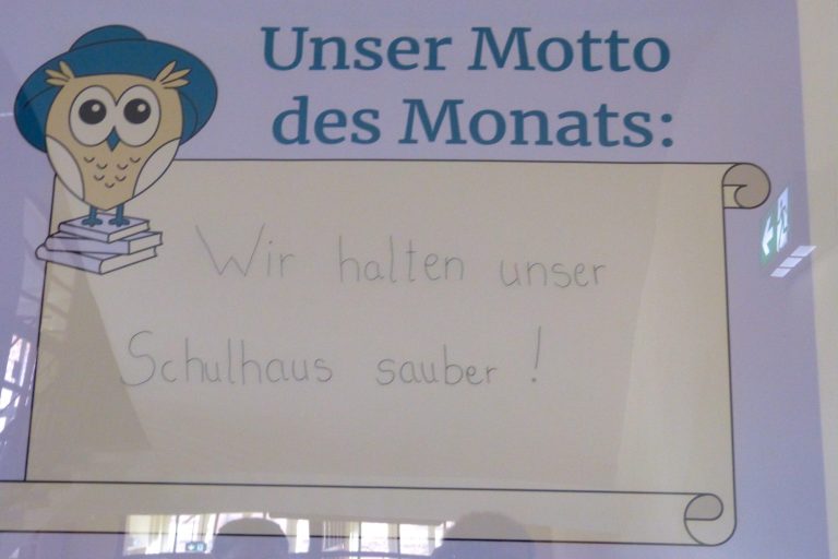 Jeden Monat gibt es ein neues Motto, das wir im Klassenrat besprechen, ausprobieren und im Alltag umsetzen.